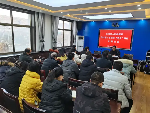 12月16日上午,庄浪县检察院召开专题会议,传达学习了政协平凉市第五届第一次会议和市五届人大一次会议精神,会议由党组成员、副检察长梁宏璧同志主持,全体干警参加。