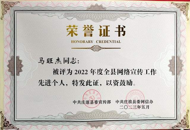 5月30日,中共庄浪县委宣传部召开全县2023年网信工作会议,会上表彰了2022年度全县网信工作先进单位和先进个人,庄浪县人民检察院荣获全县2022年度网络宣传工作先进单位,政治部干警马旺杰荣获全县2022年度网络宣传工作先进个人。