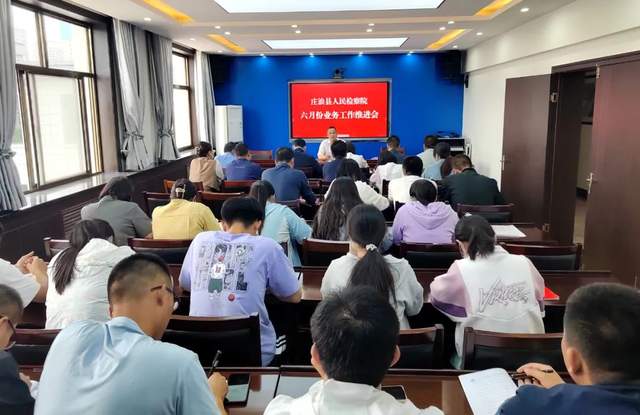 6月20日,庄浪县人民检察院召开六月份业务工作推进会,会议由党组书记、检察长王军雄主持,全体干警参加。