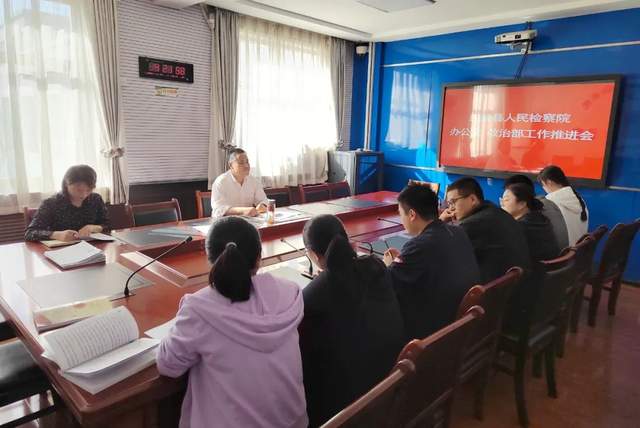 王军雄检察长强调,一要树立大局意识。办公室和政治部作为综合部门,主要承担沟通上下、联系左右、统筹协调、服务全院的综合职能,每一项工作都具有很强的全局性,在工作中要明确职责,找准位置、发挥作用,确保机关检令畅通和灵活、优质、高效运转。二要善于抓主抓重。综合工作繁杂、量大,要善于抓住工作重点,集中优势力量攻坚克难。办公室要正确处理政务和事务的关系,合理统筹、全面做好文稿起草、计财、技术、后勤保障等重点工作,政治部要突出抓好检察宣传、机关党建、队伍管理、业务培训、作风建设等主要任务,在取得工作实效上求突破。三要努力担当作为。今年“三个一”创建、检察宣传、档案整理等工作和去年同期相比不同程度都有所下滑。在今后的工作中要坚持问题导向、目标导向、结果导向,对年初重点工作任务和目前工作开展情况进行深入比对分析,对处于后进位次的工作要抓在手上、放在心上,综合施策,确保时间过半任务过半。四要加强自身建设。科室负责人要分任务、压担子,年轻干警要主动领任务、担担子,主动学习钻研办文、办事、办会知识,争取尽快成长为独当一面的业务能手,提升办公室工作规范化水平。要发扬精诚团结的奋斗精神,增强团队意识,汇聚集体智慧,凝聚整体合力,有力有效推动整体工作上台阶。